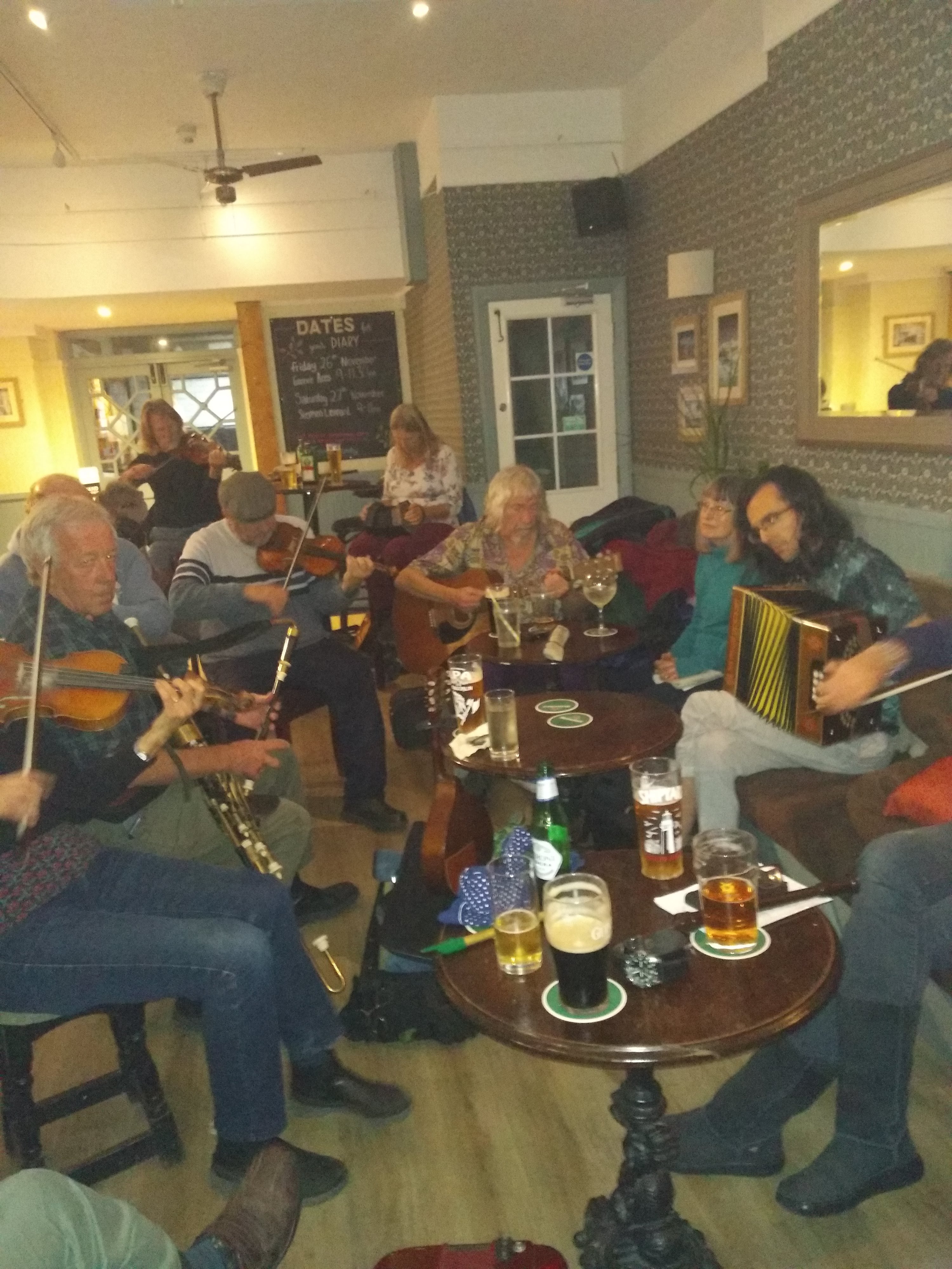 This is the original Shoreham folk music session, which has been continuously taking place in various pubs in the town for about 30 years. You might hear all kinds of instruments for example, fiddle, guitar, accordion, melodeon, flute, penny whistle, hurdy-gurdy, bag-pipes and who knows what else. The format is a traditional folk music round-table session; performers take it in turns to lead a song or a tune with others joining in or listening as they wish. Musicians and audience welcome. Free entry for all! Typical Tunes and Songs Some of the tunes and songs were videoed by a visitor, John Harvey, who put them on Youtube - thanks John!